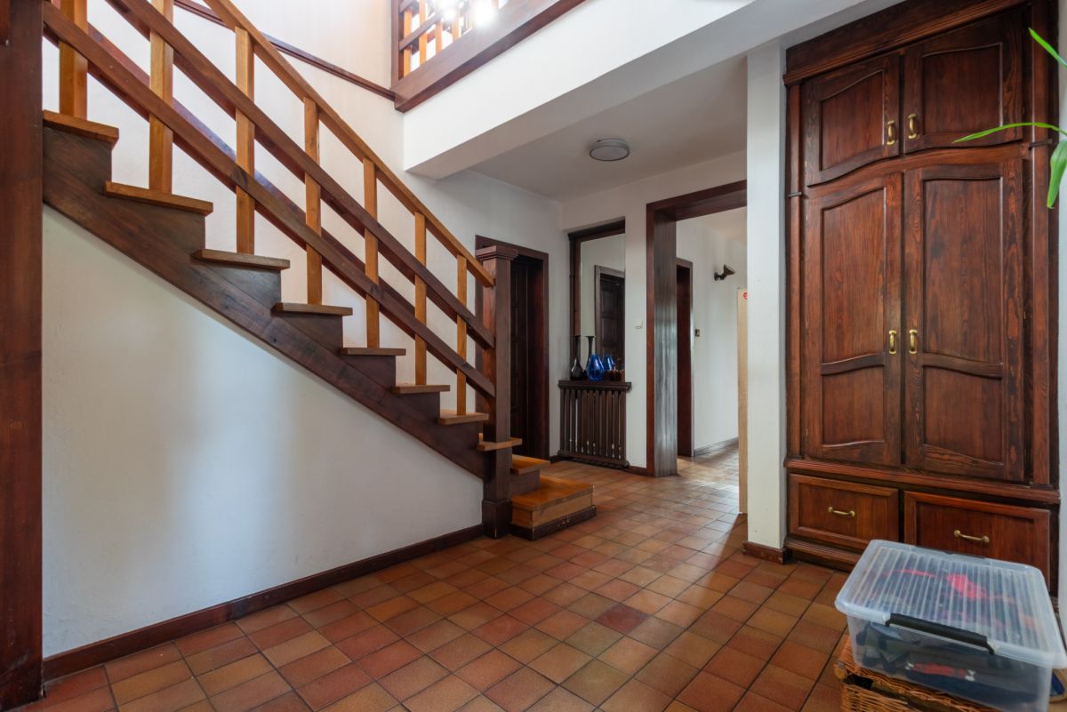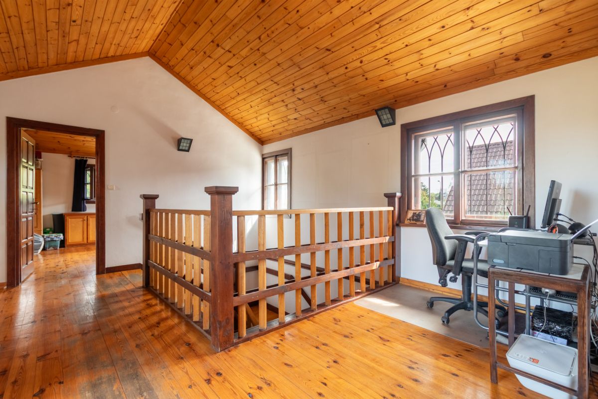 Dom o powierzchni użytkowej 220 mkw znajduje się na działce 835 mkw i został wybudowany w 1988 roku. Został zaprojektowany z myślą o komforcie życia codziennego, z podziałem na funkcjonalną strefę dzienną na parterze i prywatną strefę nocną na poddaszu.