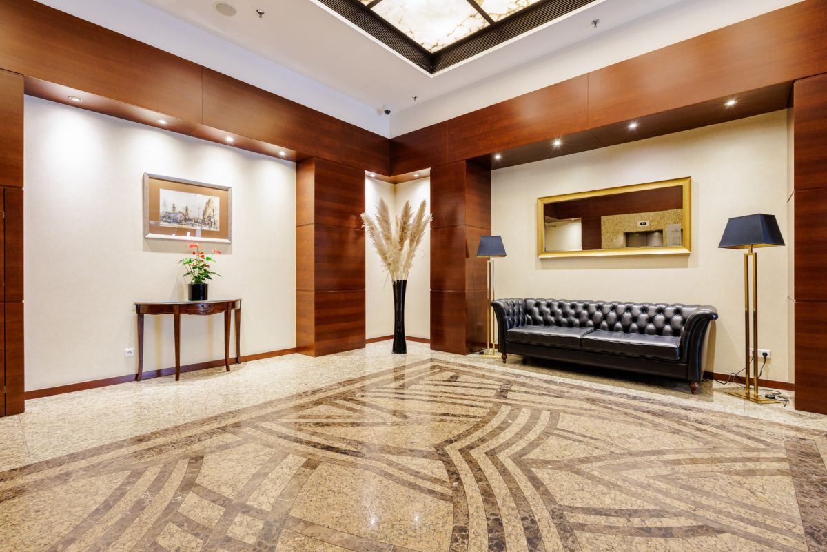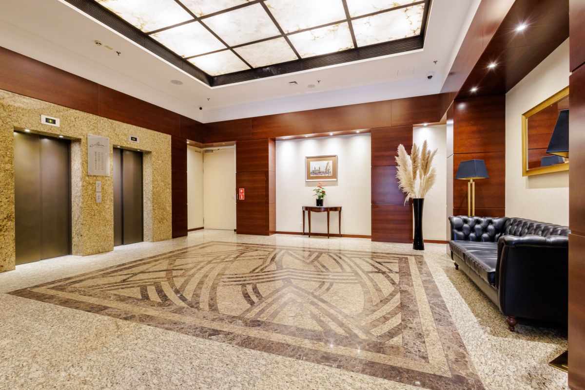 Atelier Residence to nowoczesny, strzeżony apartamentowiec z całodobową ochroną i monitoringiem. Części wspólne są zadbane i estetyczne - reprezentacyjne lobby, eleganckie windy oraz korytarze wykończone drewnem i wykładzinami dywanowymi. To miejsce, które zapewnia komfort i robi dobre wrażenie na klientach.