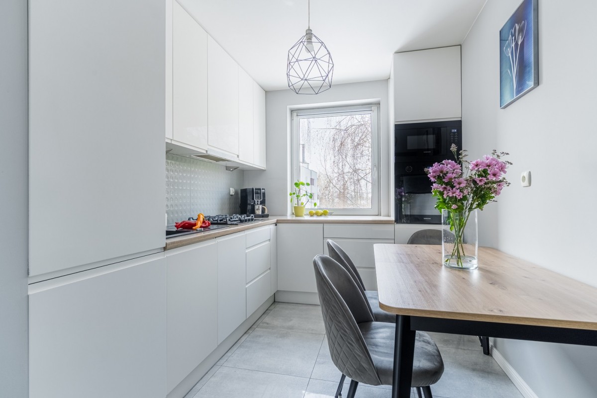 - Nowoczesnej widnej kuchni (8,7 m2), z pełną zabudową AGD