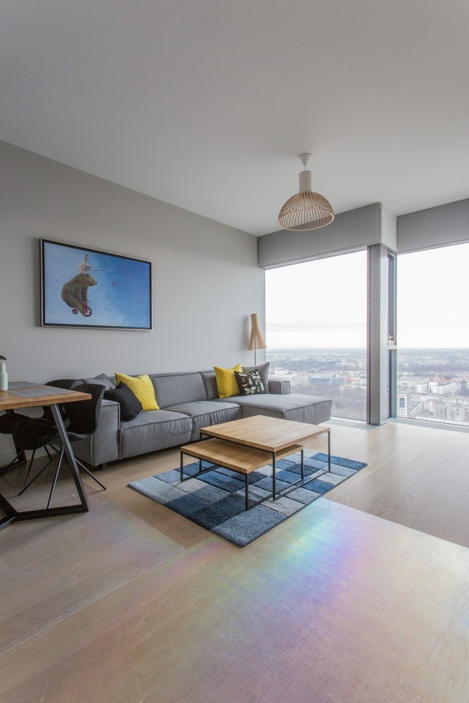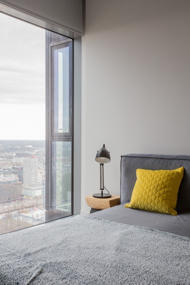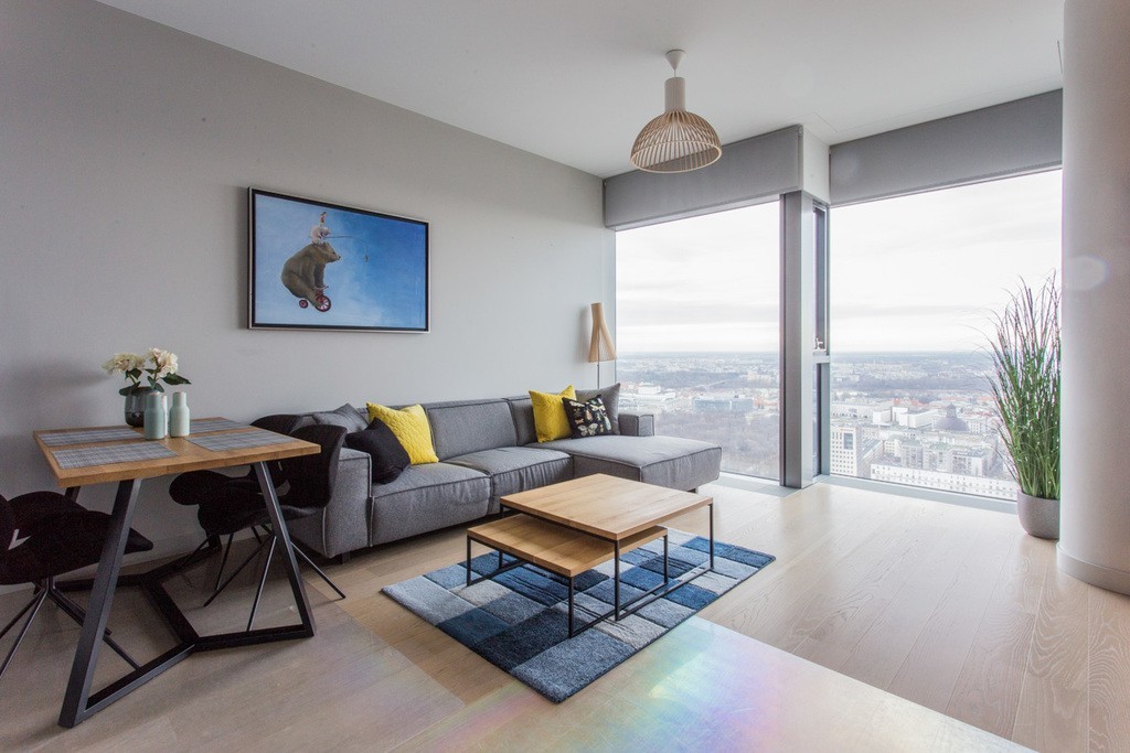 Twarda – Cosmopolitan. Luksusowo urządzone mieszkanie z pięknym widokiem na Warszawę.