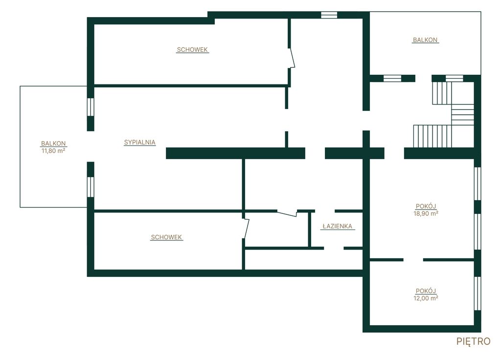 Piętro domu składa się z 2 sypialni (każda z przestronną garderobą) oraz łazienki.
