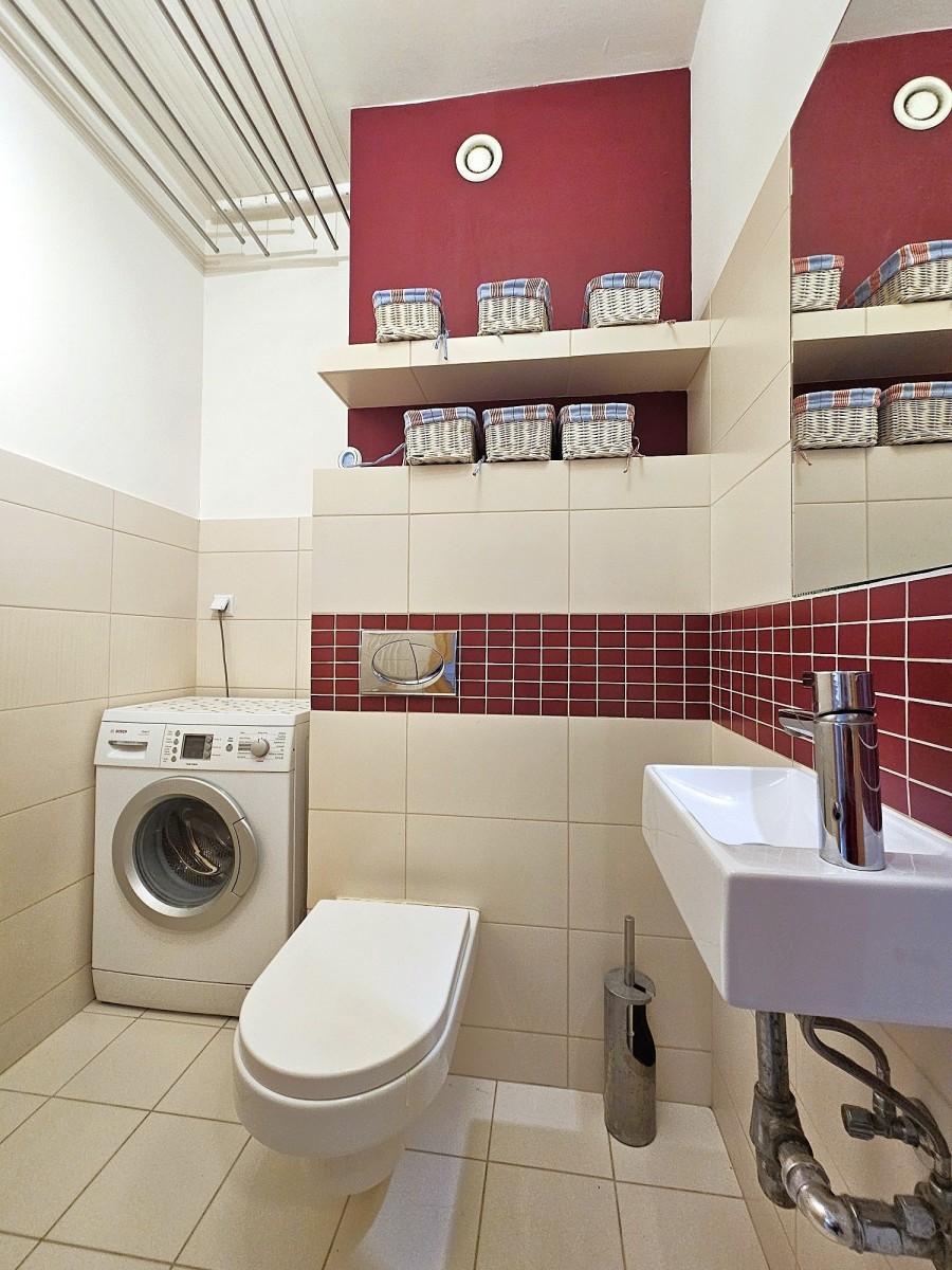 Składa się z pokoju dziennego połączonego z kuchnią, dwóch sypialni, łazienki z wanną i kabiną prysznicową, WC z miejscem na pralnię dwóch balkonów i miejsca w garaż podziemnym.