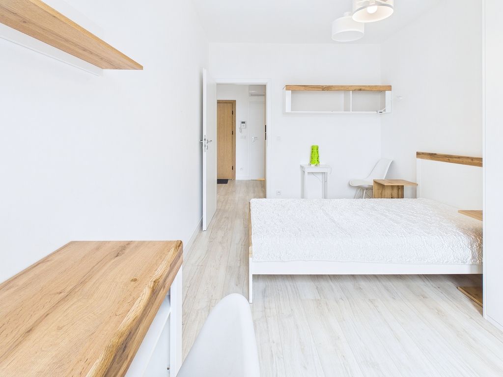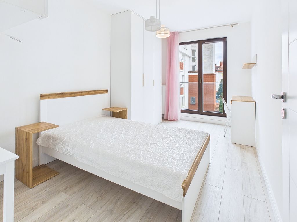 Apartament charakteryzuje się przemyślanym układem z ekspozycją wschodnio-południową, co zapewnia mnóstwo naturalnego światła. Wnętrze zostało zaprojektowane z dbałością o detale, a wysoka jakość wykończenia, białe ściany i eleganckie panele podłogowe nadają mu unikalny, skandynawski charakter. Przestronny balkon stanowi doskonałe dopełnienie części dziennej.